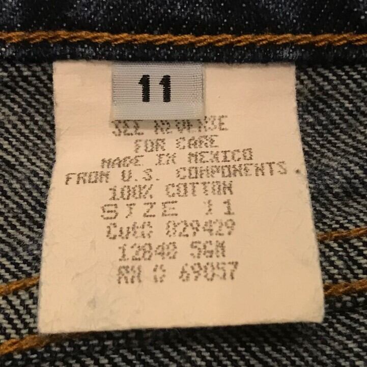 ■カラー:インディゴ ■サイズ:表示 11(実寸ウエスト76cm、股下78cm、股上25cm、股幅30cm、裾幅28cm)多少の誤差はご了承ください。 ■素材:コットン100% ■原産国:MEXICO ■コンディション:古着並で目に付く汚れやダメージはありません。