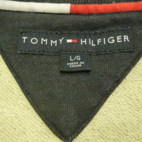 裏はパイル地です!!トミーヒルフィガーのジップアップスウェット ■カラー:グレー リブ部分はネイビー ■サイズ:表示 LG(肩幅53cm、身幅55cm、着丈74cm、袖丈67cm)多少の誤差はご了承ください。 ■素材:コットン100% ■原産国:CHINA (株)トミーヒルフィガージャパン ■コンディション:古着並で目に付く汚れやダメージはありません。