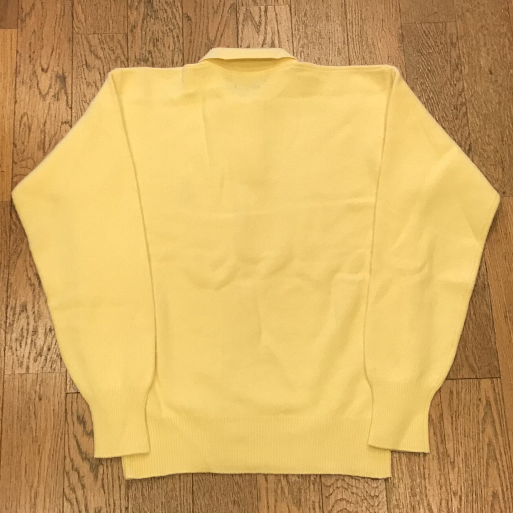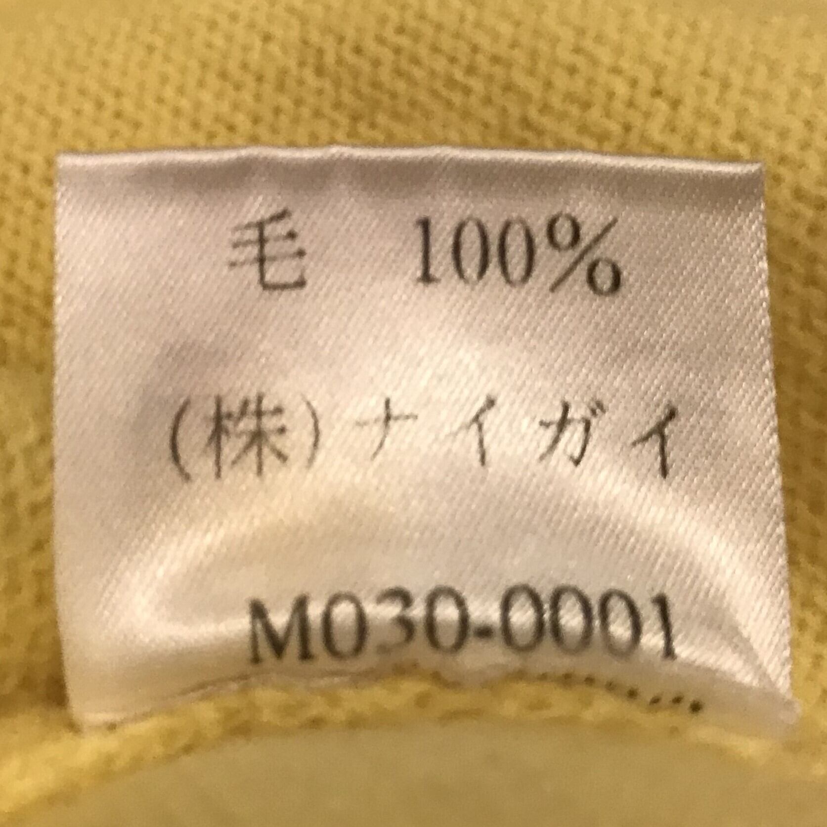 ■カラー:イエロー系 ■サイズ:表示 L(肩幅50cm、身幅55cm、着丈62cm、袖丈62cm)多少の誤差はご了承ください。 ■素材:毛100% ■原産国:HONG KONG (株)ナイガイ ■コンディション:古着並で目に付く汚れやダメージはありません。